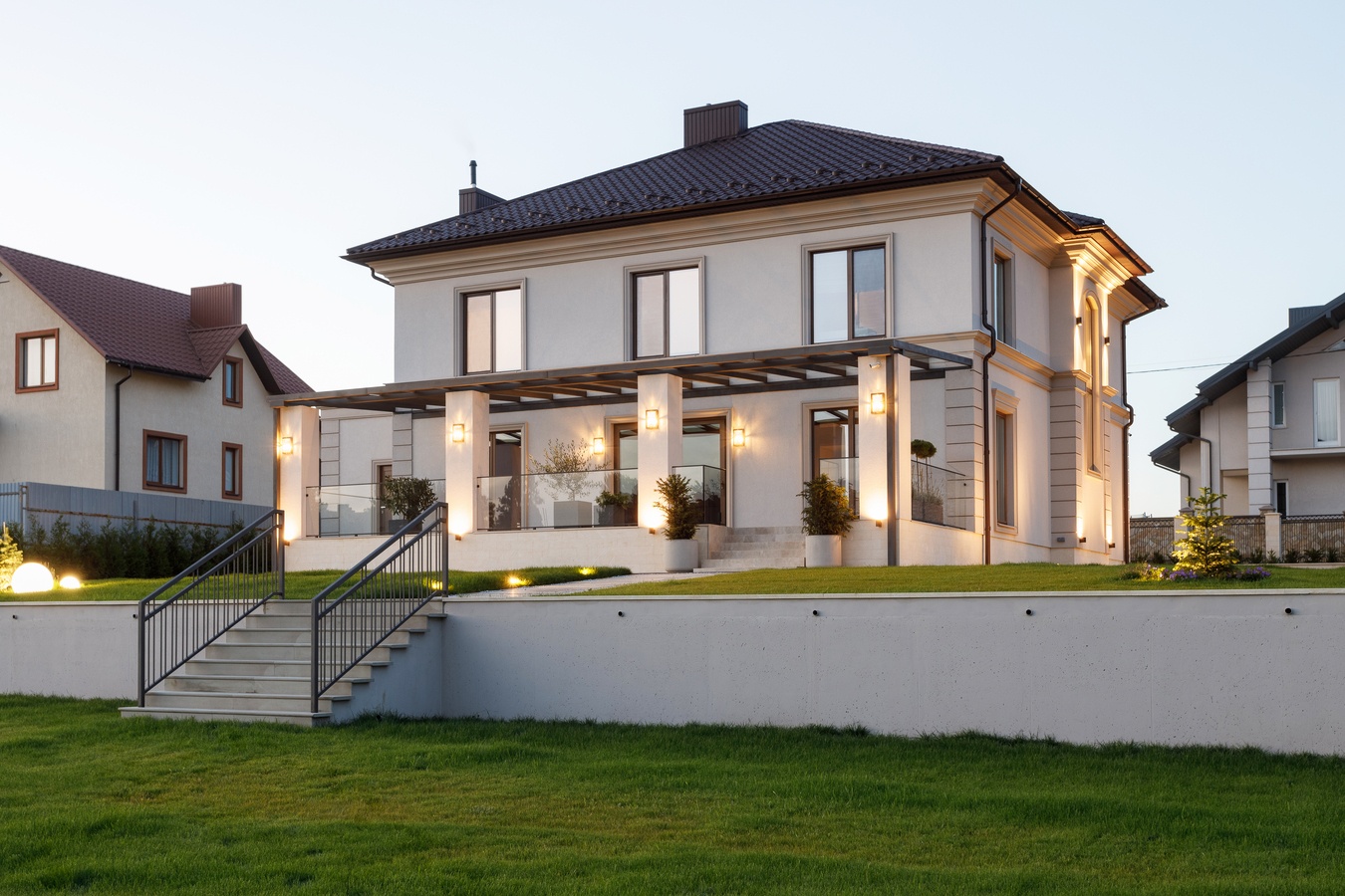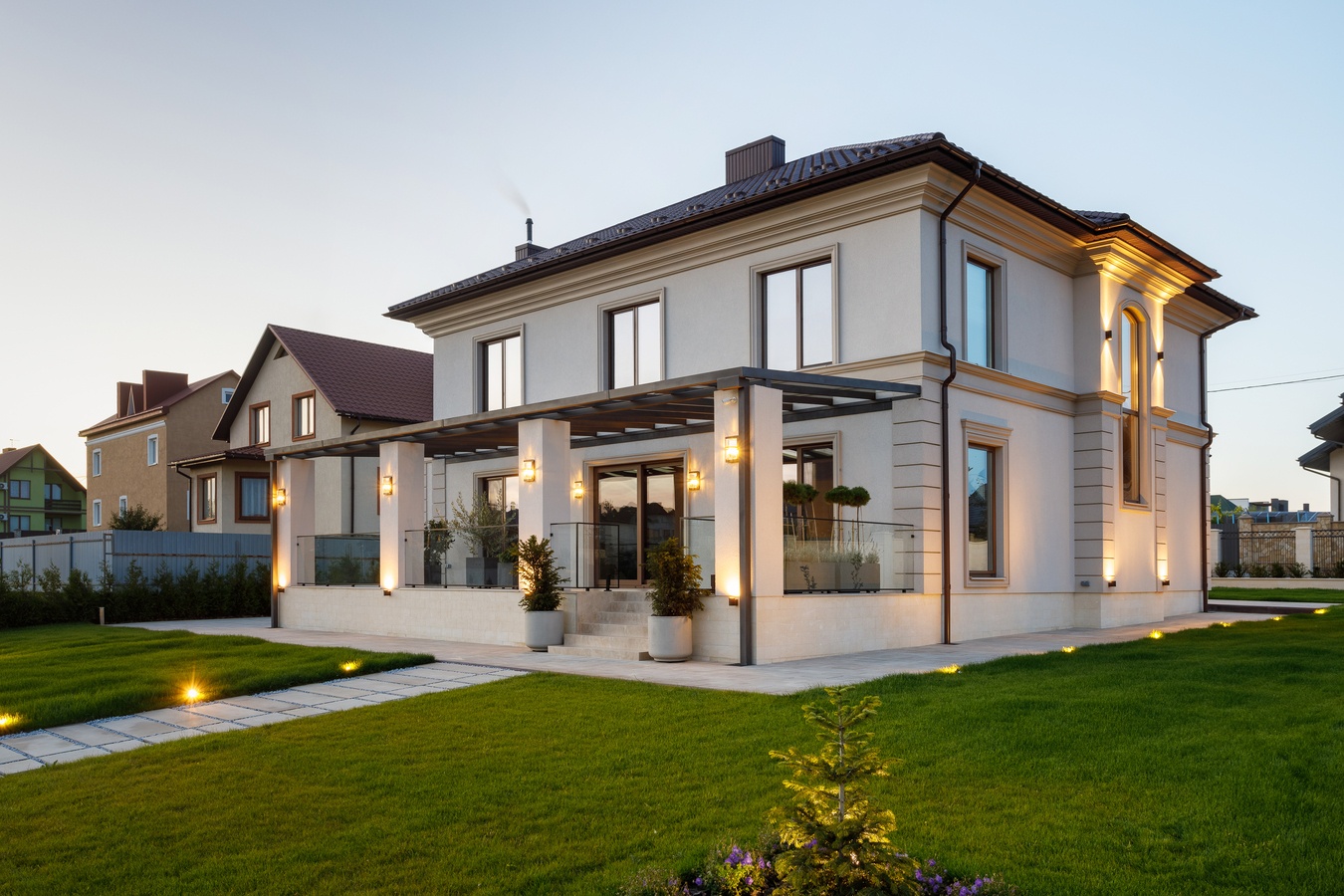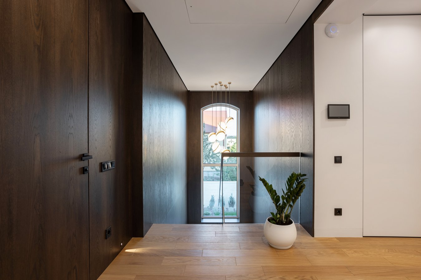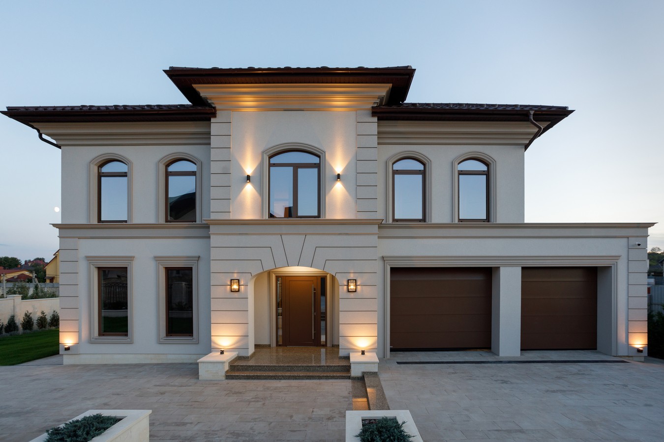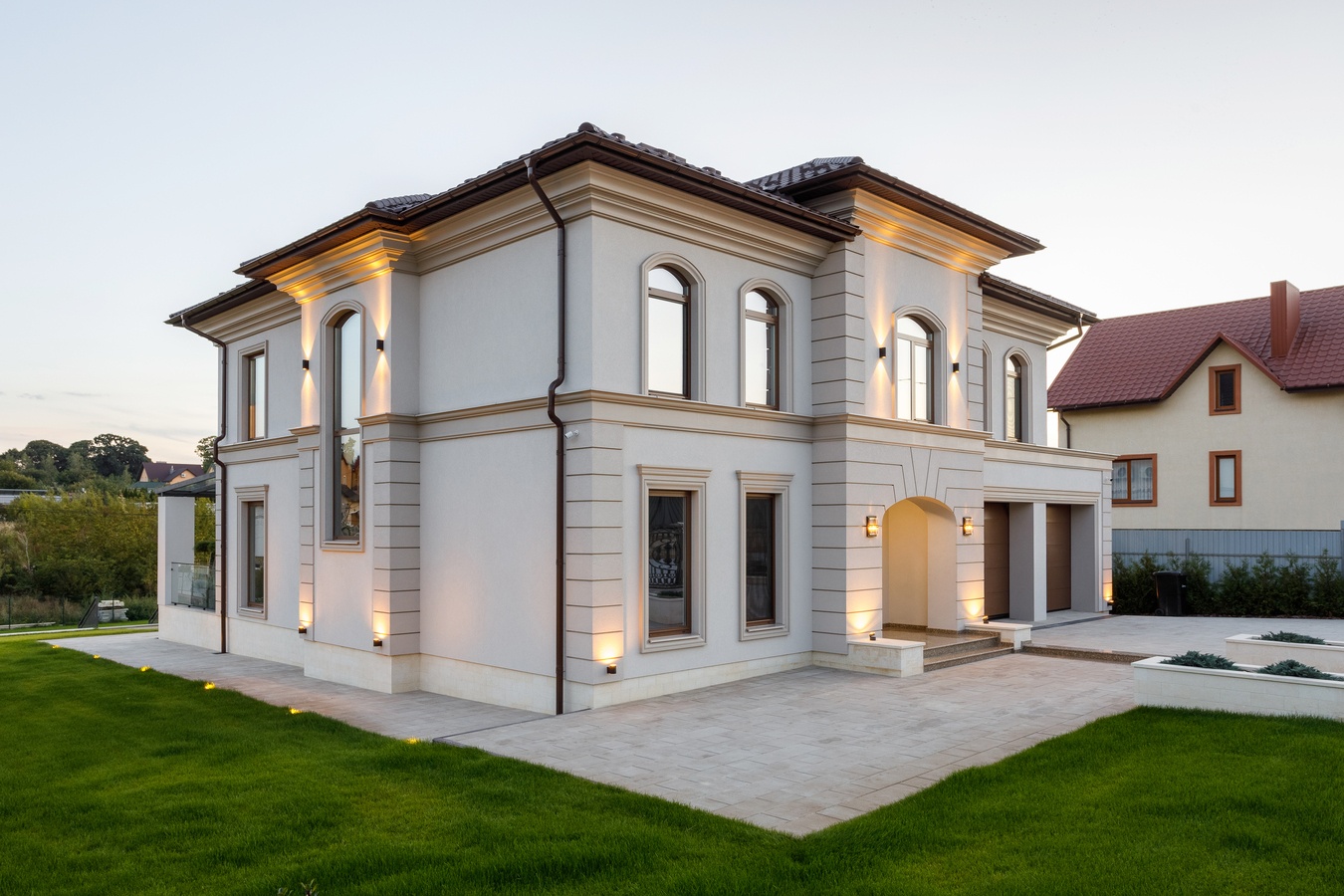 Наша студія виконала на даному об'єкті повний комплекс робіт по дизайну та реалізації даного проекту. За побажанням замовників фасад виконано у стилі сучасна-класика, а дизайн інтер'єру у більш сучасному мінімалістичному стилі.