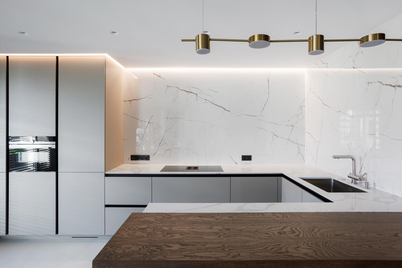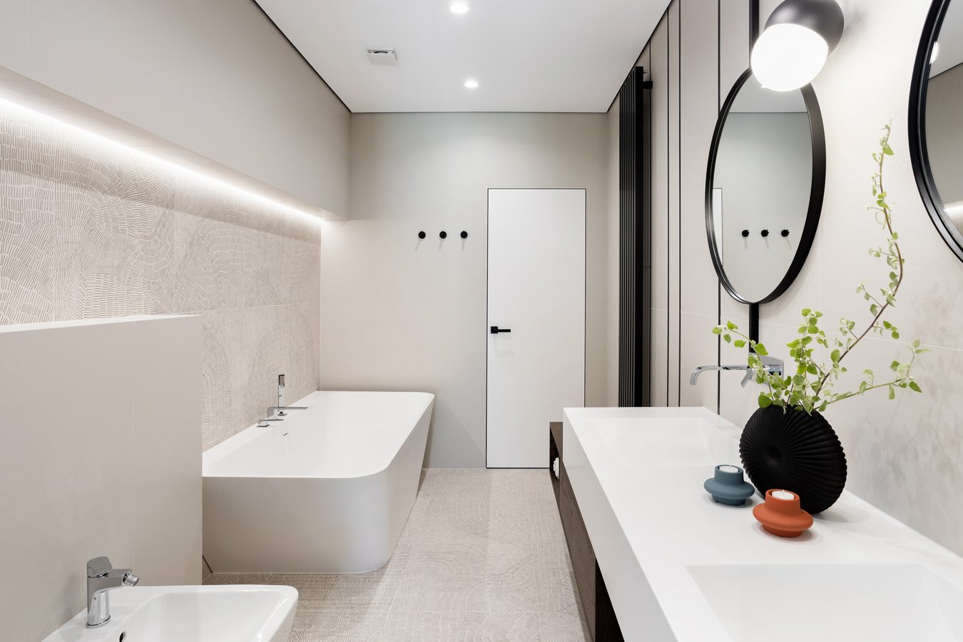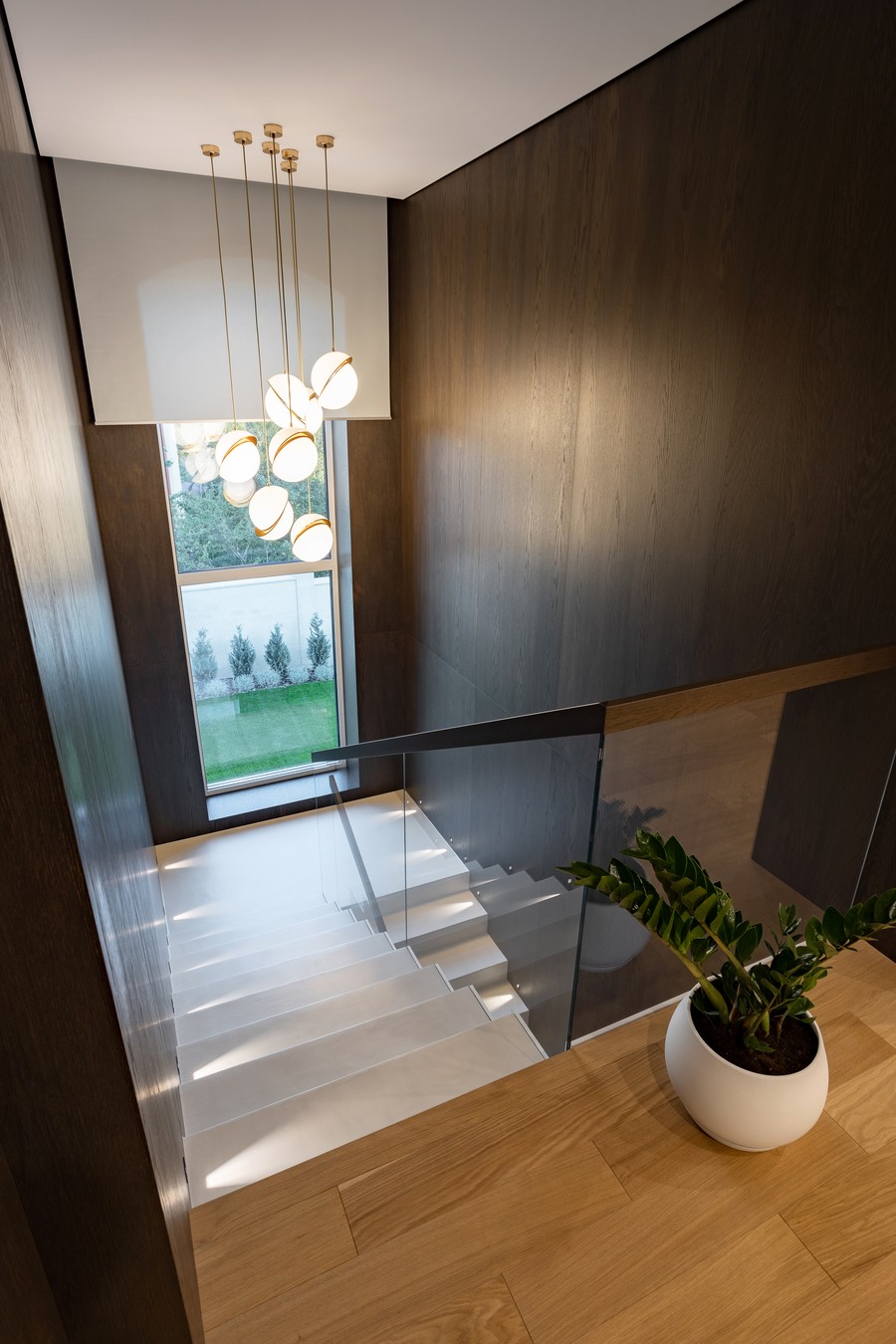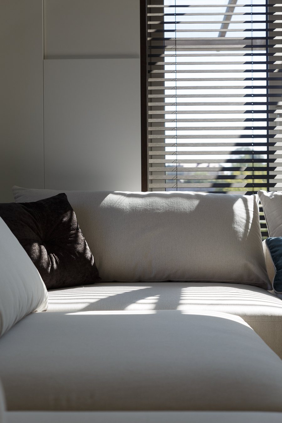 В оздобленні інтер'єру ми використали двері та плінтус прихованого монтажу , профіль тіньового шва, покриття підлоги мікроцементом. Ці елементи є невід'ємними частинами даного інтер'єру - це не тільки красиво, а й дозволить захистити його у первозданному вигляді протягом багатьох років.