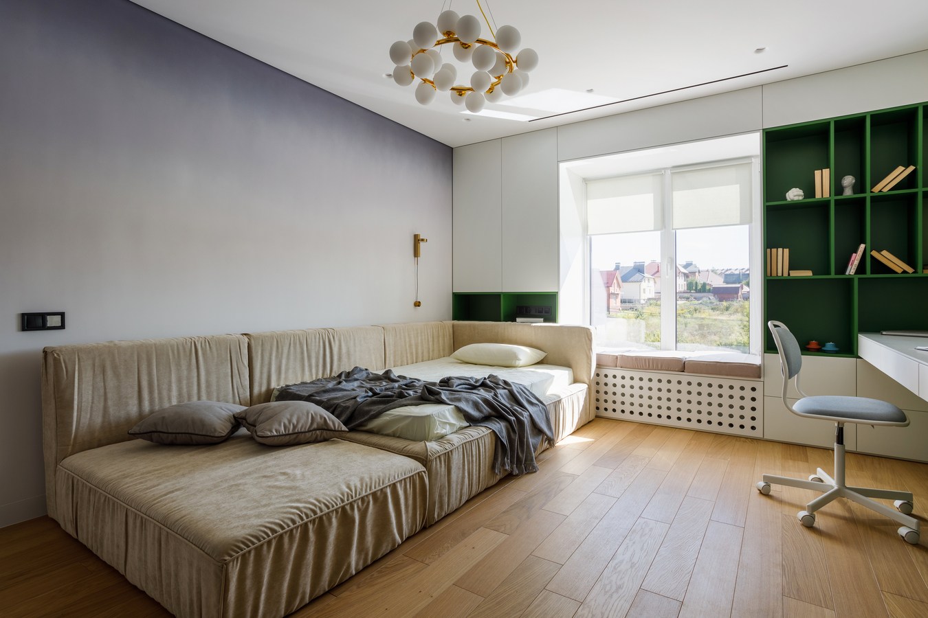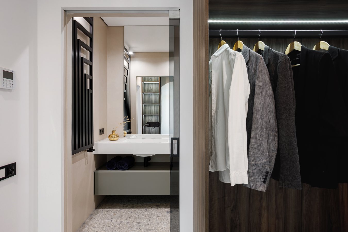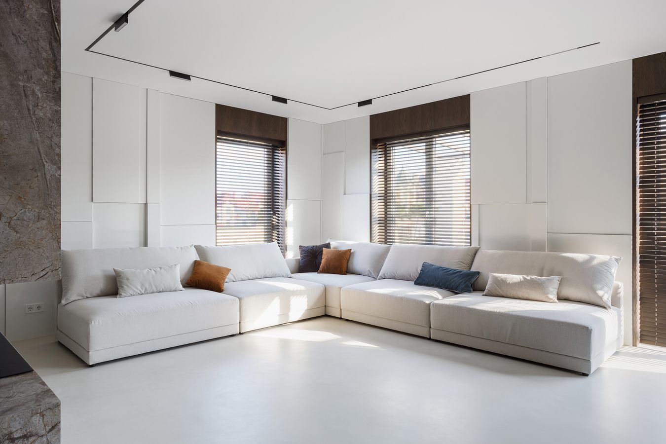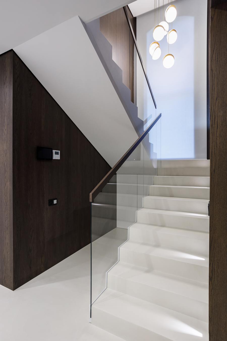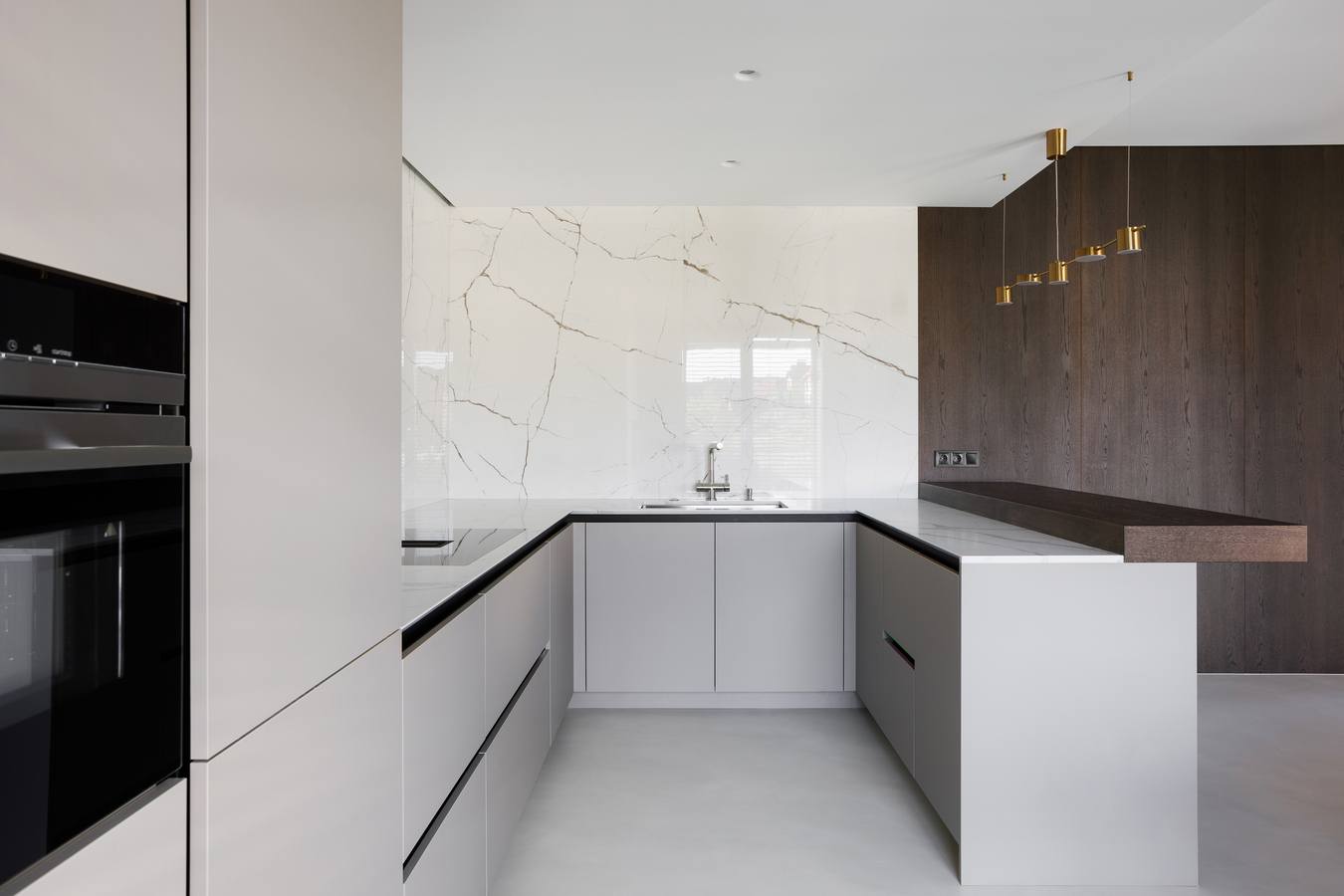 В оздобленні інтер'єру ми використали двері та плінтус прихованого монтажу , профіль тіньового шва, покриття підлоги мікроцементом. Ці елементи є невід'ємними частинами даного інтер'єру - це не тільки красиво, а й дозволить захистити його у первозданному вигляді протягом багатьох років.
