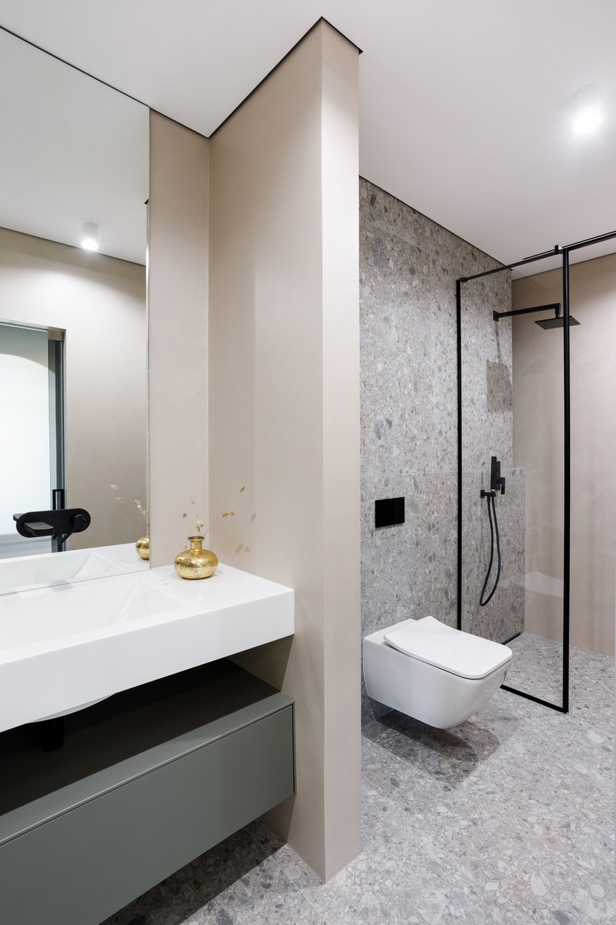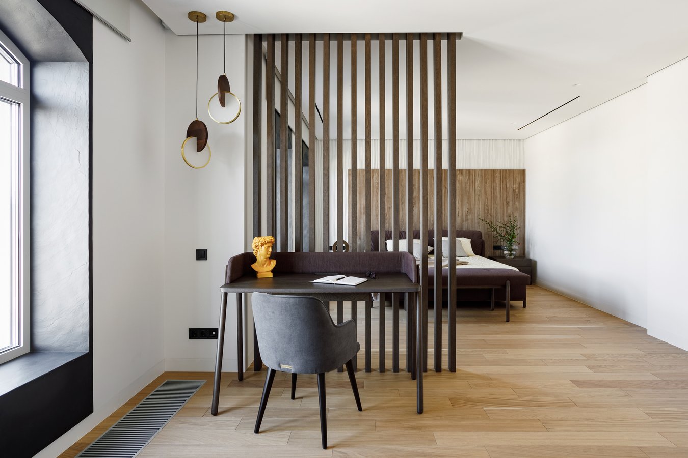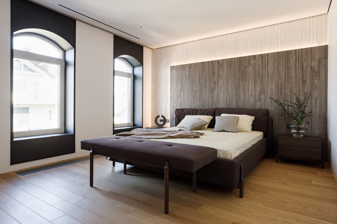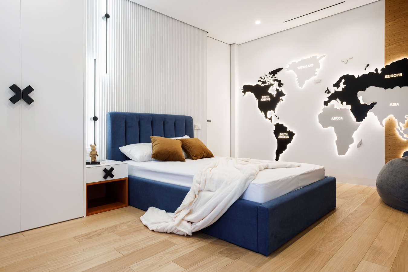 В оздобленні інтер'єру ми використали двері та плінтус прихованого монтажу , профіль тіньового шва, покриття підлоги мікроцементом. Ці елементи є невід'ємними частинами даного інтер'єру - це не тільки красиво, а й дозволить захистити його у первозданному вигляді протягом багатьох років.