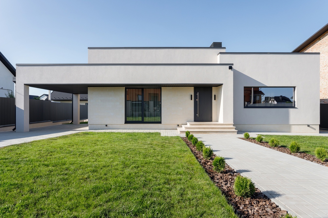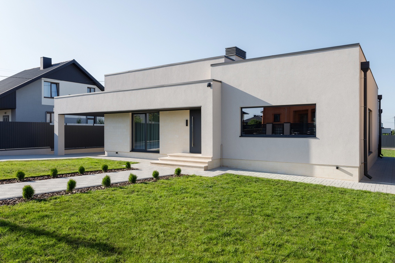 Архітектура будинку виконана в сучасному стилі з плоскою крівлею, що стає все більш актуальним у сьогоднішніх реаліях.