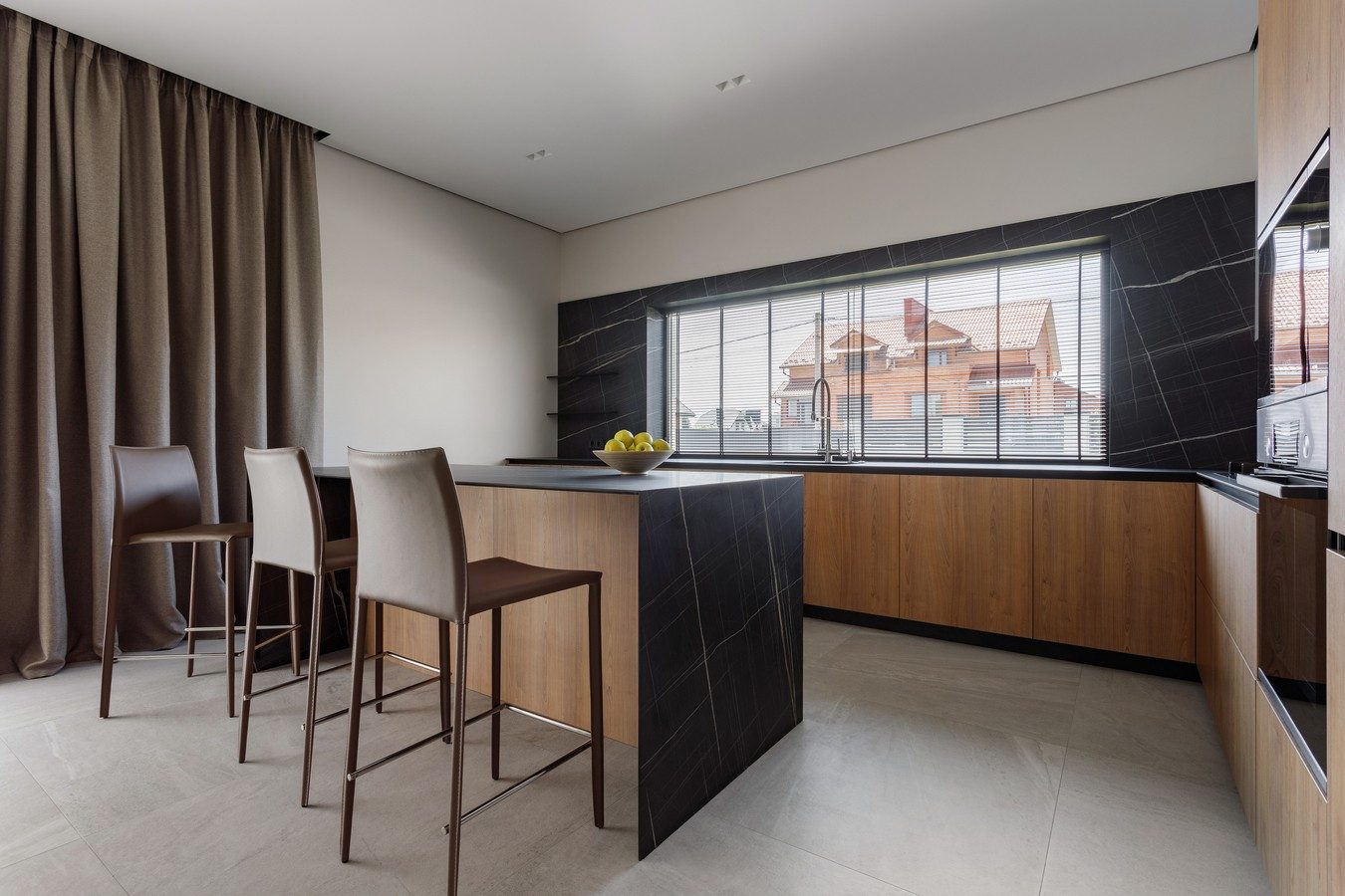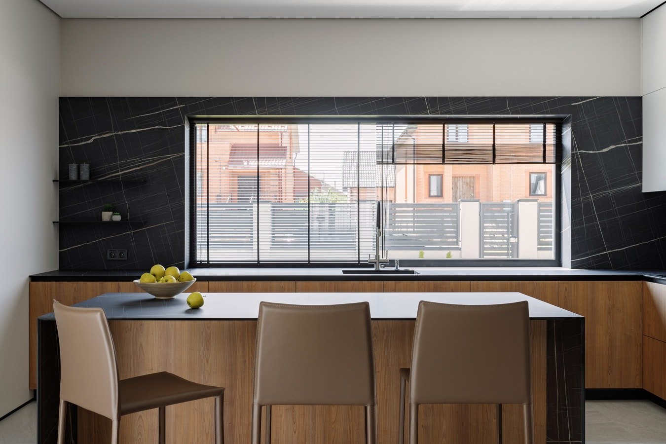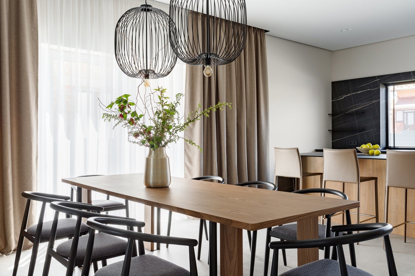 Щодо інтер'єру - об'єднана кухня з вітальнею та столовою зоною створює відкритий простір для спілкування та відпочинку, а кухонний острів додає практичності та естетики.