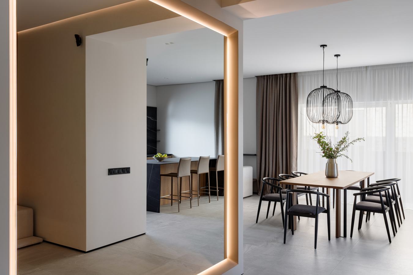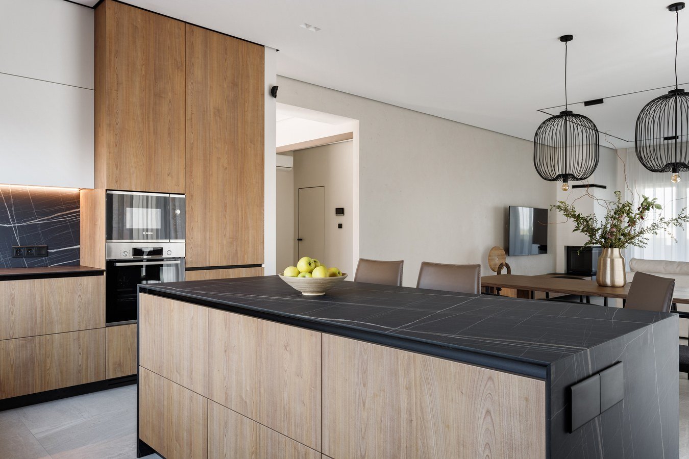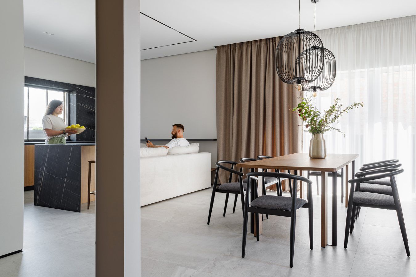 Щодо інтер'єру - об'єднана кухня з вітальнею та столовою зоною створює відкритий простір для спілкування та відпочинку, а кухонний острів додає практичності та естетики.